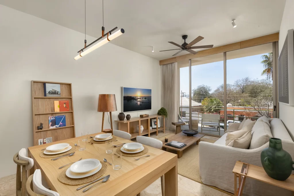 - Mulegé: 2 habitaciones, 2 baños; opciones desde 131.9 m² hasta 257.4 m², con rooftops privados.